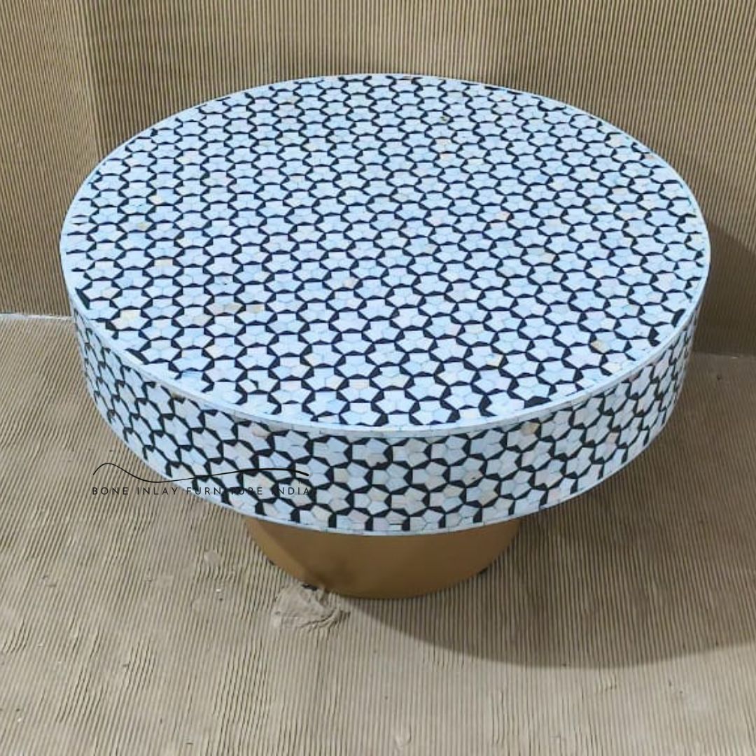 Add a luxurious touch of tradition to your interiors with the Mother of Pearl Black Round Coffee Table, a true example of fine Indian craftsmanship reimagined for modern living. Created by Bone Inlay Furniture India, this stunning centerpiece is handcrafted with precision and elegance, using a combination of wood, resin, and exquisite mother of pearl inlay to form the intricate Sikka (coin) design pattern.